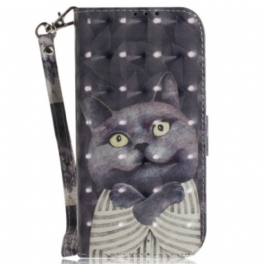 Fodral iPhone 16 Grå Katt Med Rem