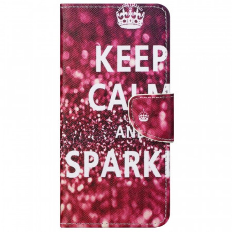 Följet Keep Calm Och Sparkle I Plånboksstil Skyddar Google Pixel 6A Samtidigt Som Den Fungerar Som Tillbehör.