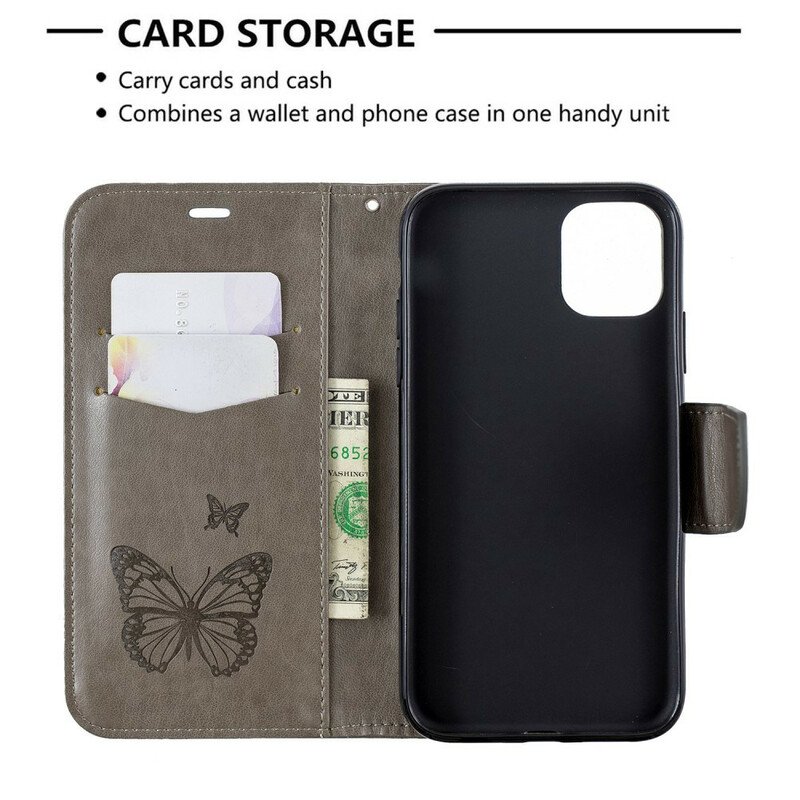 Det Tryckta Skalet I Läderimitation Butterflies Kommer Med En Praktisk Rem För Att Bära Iphone 11.