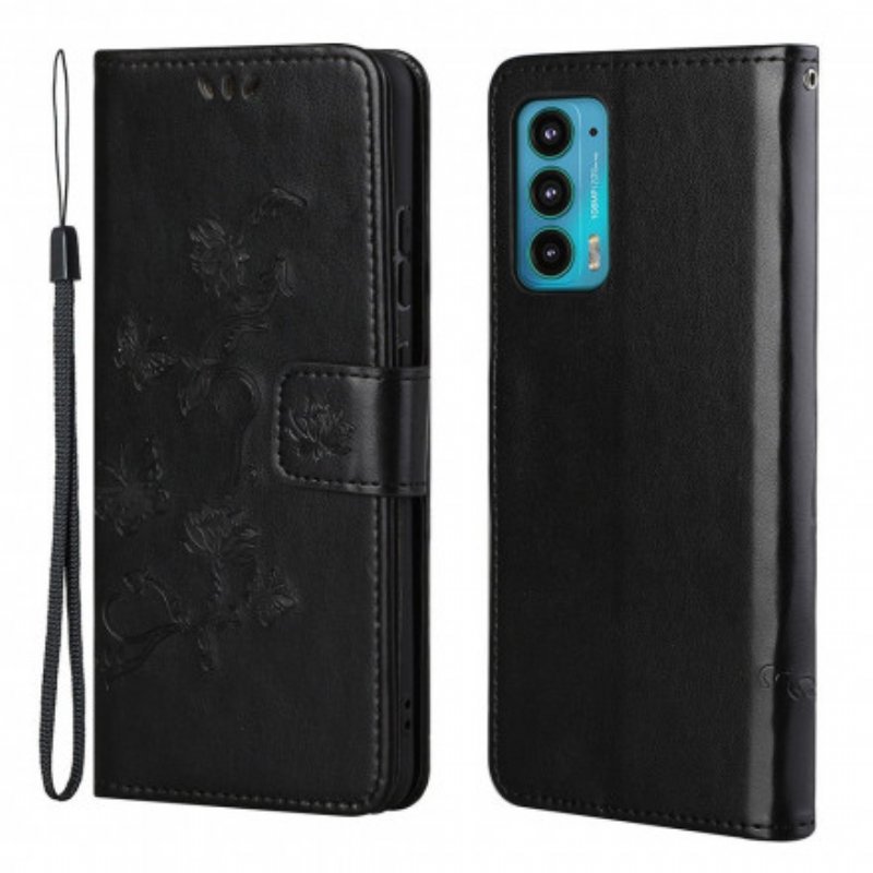 Fjärils- Och Blomfodralet Med Magnetisk Flik Skyddar Din Motorola Edge 20.