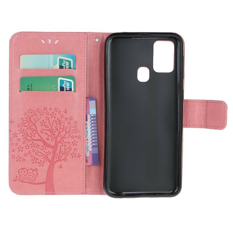 Tree And Owls-Skyddet, Med Magnetisk Flik, Skyddar Din Oneplus Nord N100.