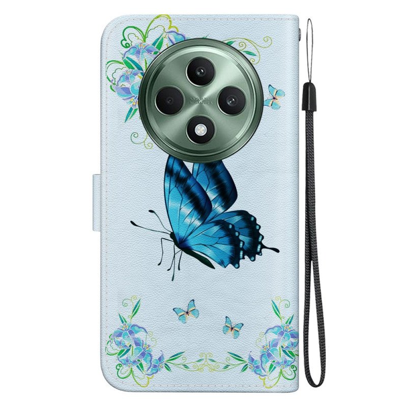 Fodral Oppo Reno 12f 5g Blå Fjäril Och Blommor Med Rem