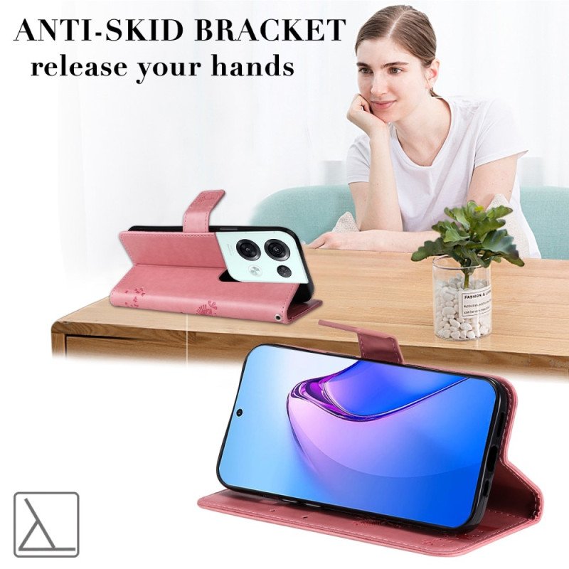 Katt- Och Fjärilshöljet Med Lädereffekt, Med Magnetisk Flik, Skyddar Din Oppo Reno 8 Pro.