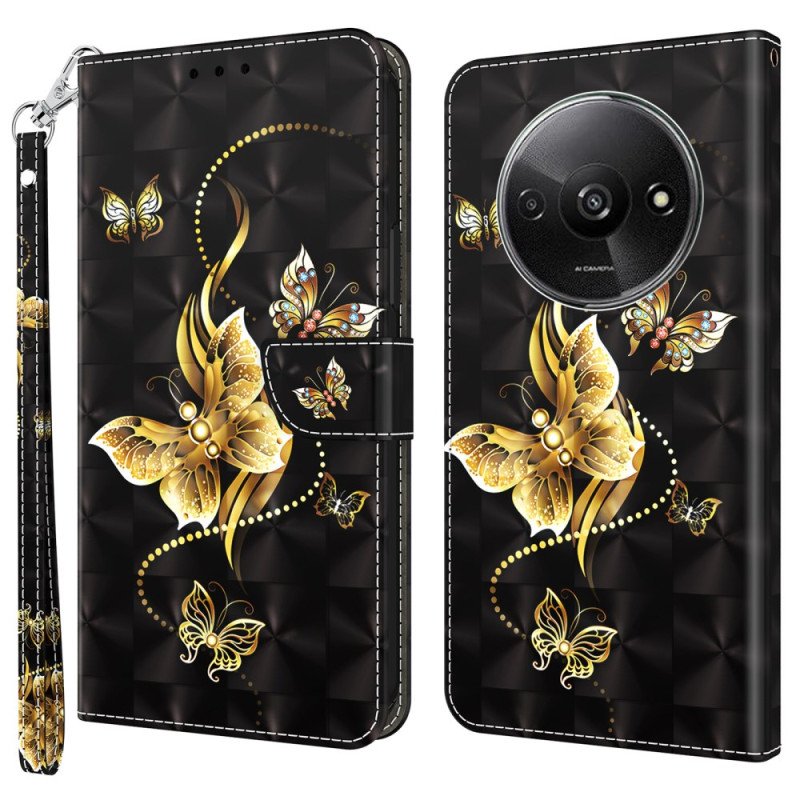 Fodral Poco C61 Gyllene Fjärilar Med Rem