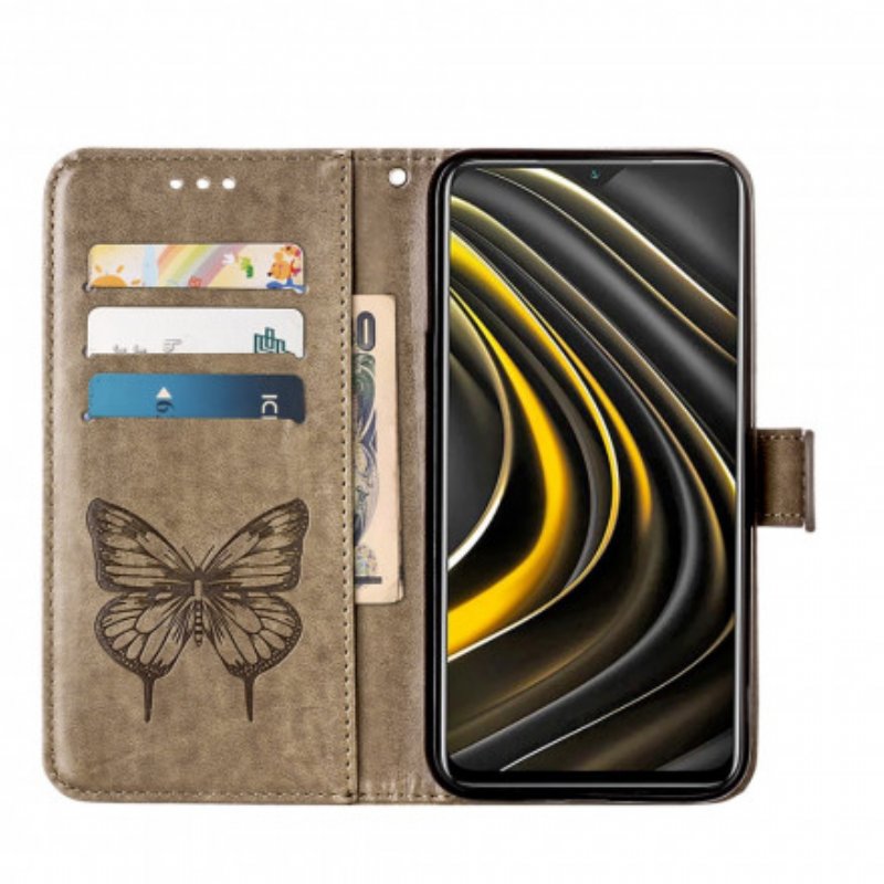 Fodral Poco M3 Butterfly Design Med Lanyard