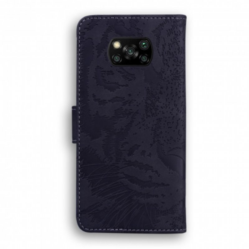 Skydda Din Xiaomi Poco X3 / X3 Pro / X3 Nfc Från Väder Och Vind Med Detta Tiger Face Imprint-Fodral I Konstläder.