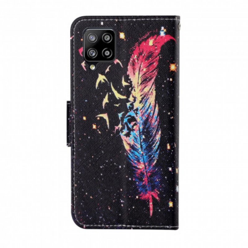 Fodral Samsung Galaxy A22 Med Kedjar Färgglad Fjäder Med Rem