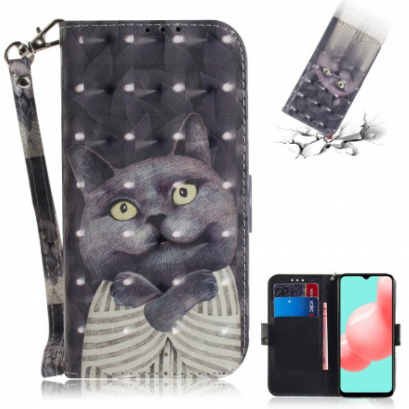 Fodral Samsung Galaxy A32 5G Med Kedjar Grå Katt Med Rem