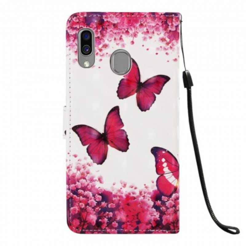 Fodral Samsung Galaxy A40 Röda Fjärilar