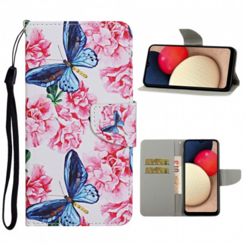 Fodral Samsung Galaxy A52 4G / A52 5G / A52s 5G Butterflies Floral Lanyard
