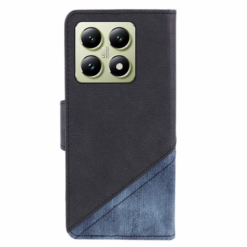 - Detta Fodral Till Xiaomi 14T Pro Sticker Ut Med Sin Unika Lapptäcksdesign, Som Kombinerar Läder- Och Denimtexturer För En Robust Och Stilren Look. Iögonfallande.
