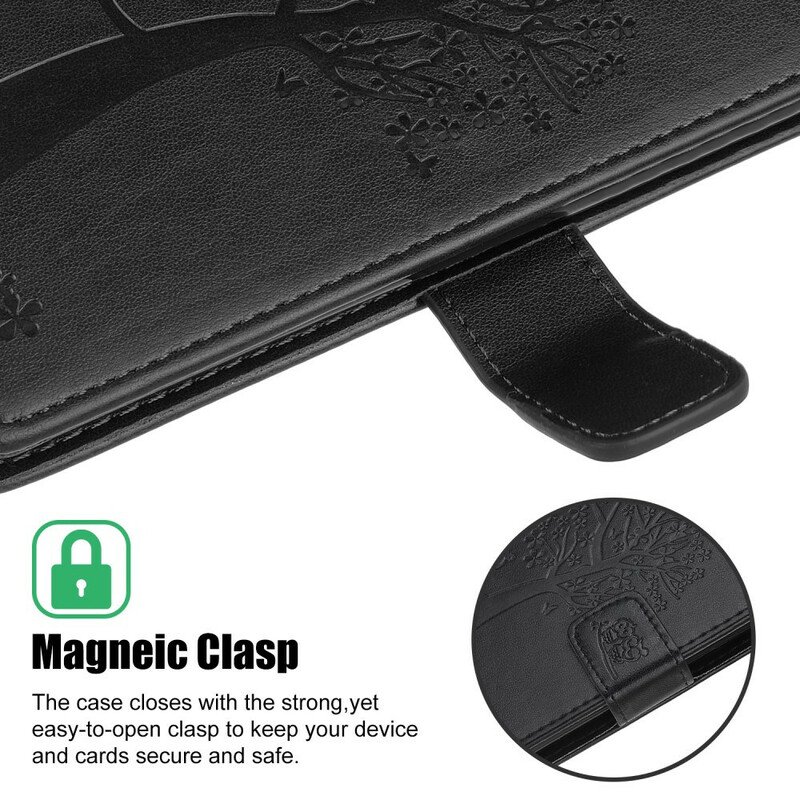 Trä- Och Ugglskyddet Med Lädereffekt, Med Magnetisk Flik, Skyddar Din Xiaomi 10T / 10T Pro Mot Stötar Och Damm.