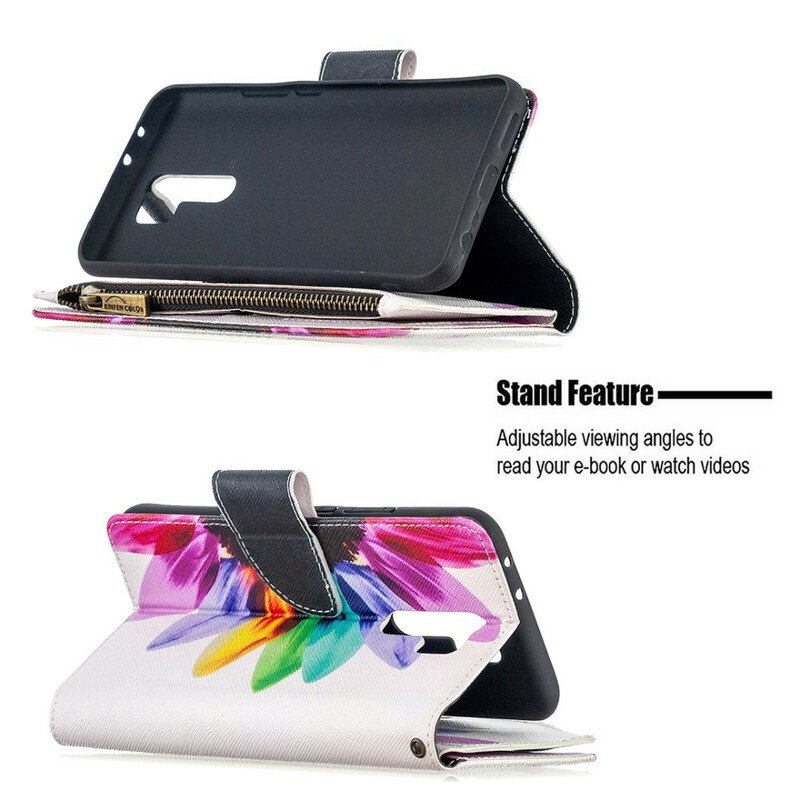 Fodral Xiaomi Redmi 9 Blomma Blixtlåsficka
