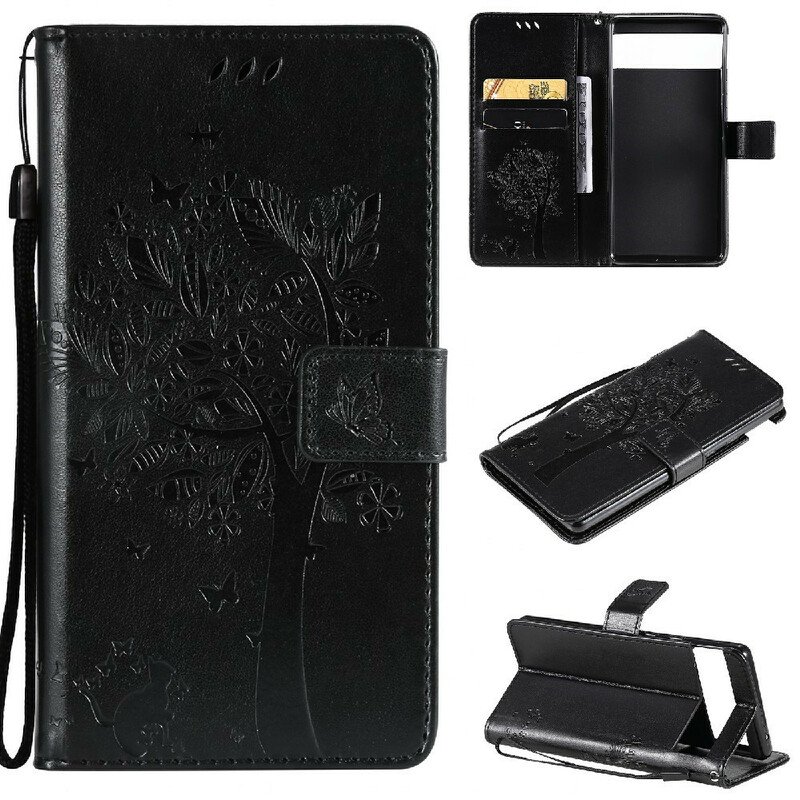 Folio-fodral Google Pixel 6 Med Kedjar Träd Och Kattunge Med Rem