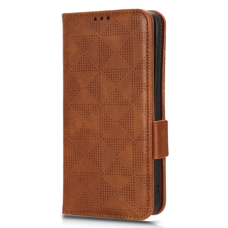 Detta Remfodral Dekorerad Med Diskreta Trianglar Kommer Att Skydda Din Huawei P60 Pro Samtidigt Som Den Fungerar Som Plånbok Och Stöd.