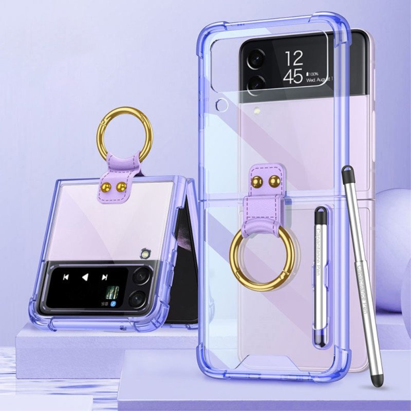 Skydda Din Samsung Galaxy Z Flip 4 Med Detta Skal Från Gkk Utrustad Med En Ring Och En Penna.