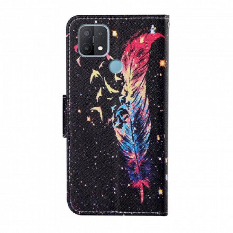 Folio-fodral Oppo A15 Med Kedjar Färgglad Fjäder Med Rem