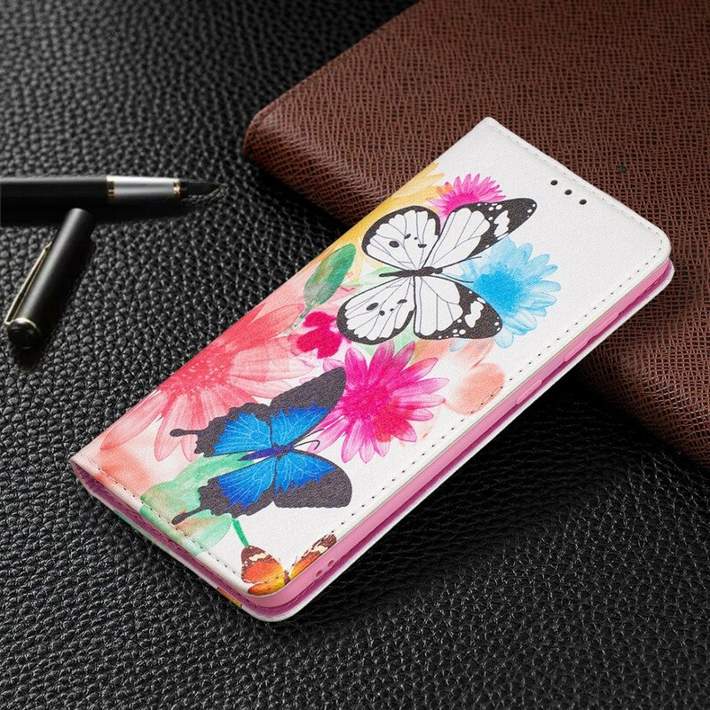 Colorful Butterflies Flip Cover (Med Integrerat Spänne) Är Perfekt För Att Säkra Hela Din Samsung Galaxy A21S.