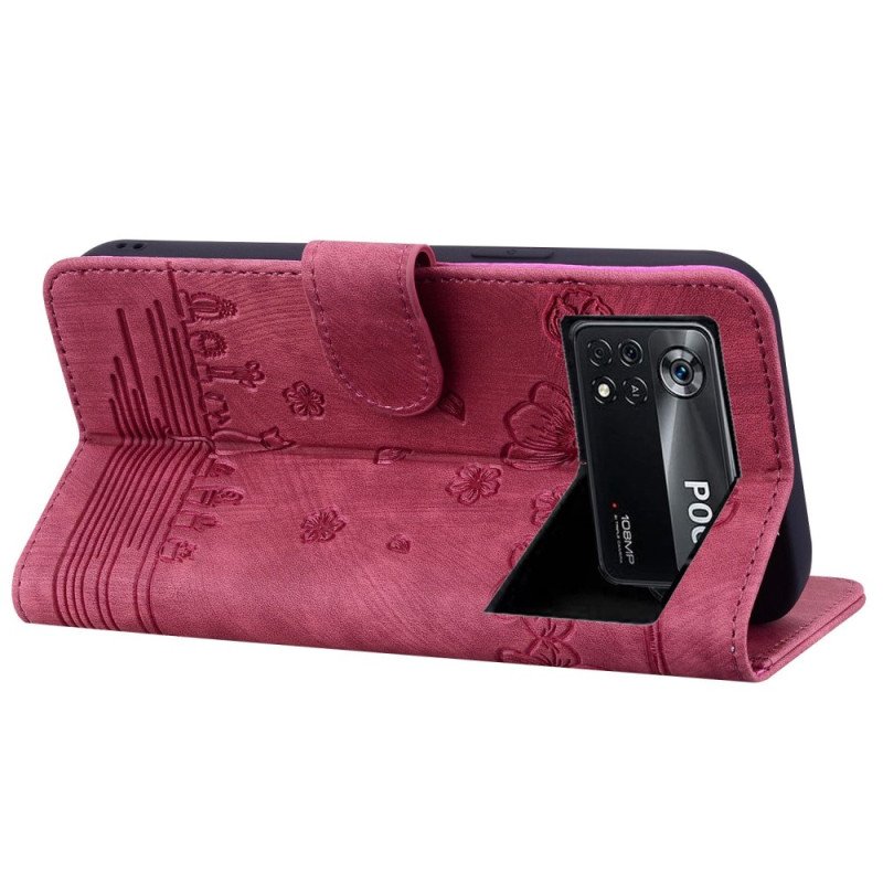 Läderfodral Poco X4 Pro 5G Med Kedjar Blommig Stringtrosa Katt