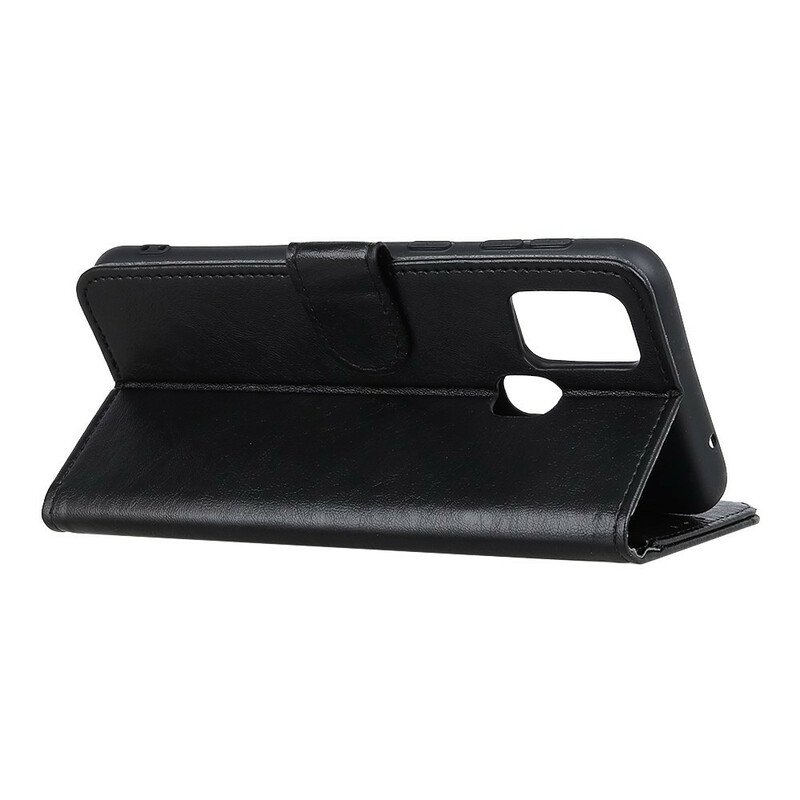 Läderfodral Samsung Galaxy A21s Folio-fodral Shine Lädereffekt Främre Klaff