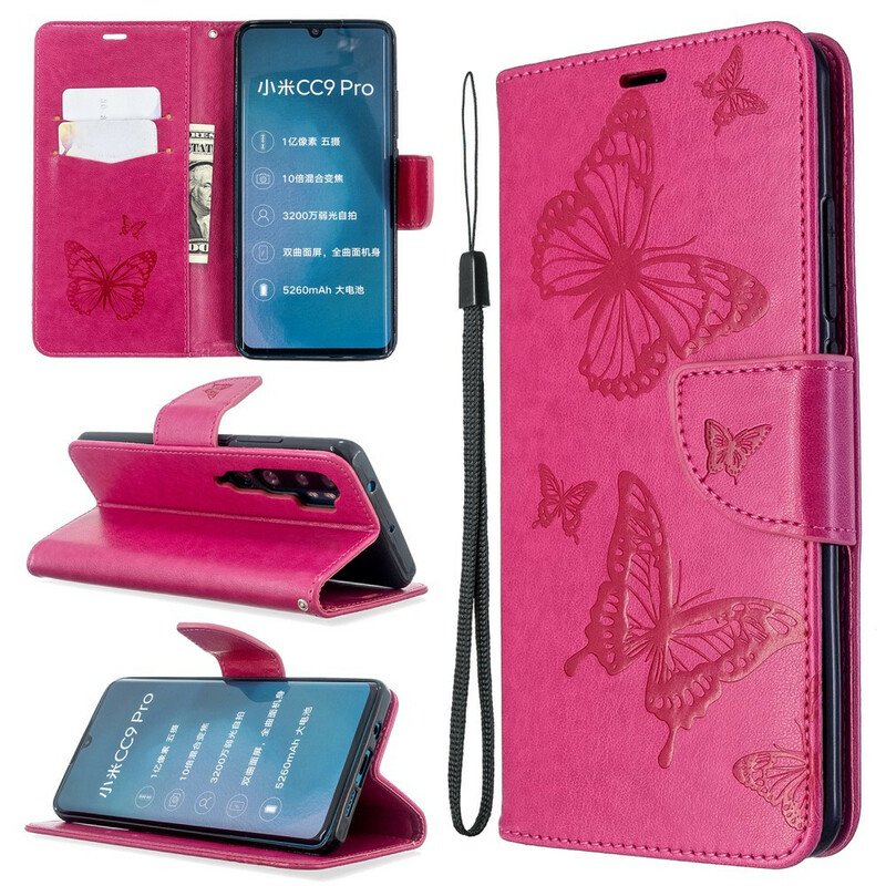Foxläderfodralet Med Två Tryckta Fjärilar Levereras Med En Praktisk Rem För Att Bära Xiaomi Mi Note 10 / Note 10 Pro.
