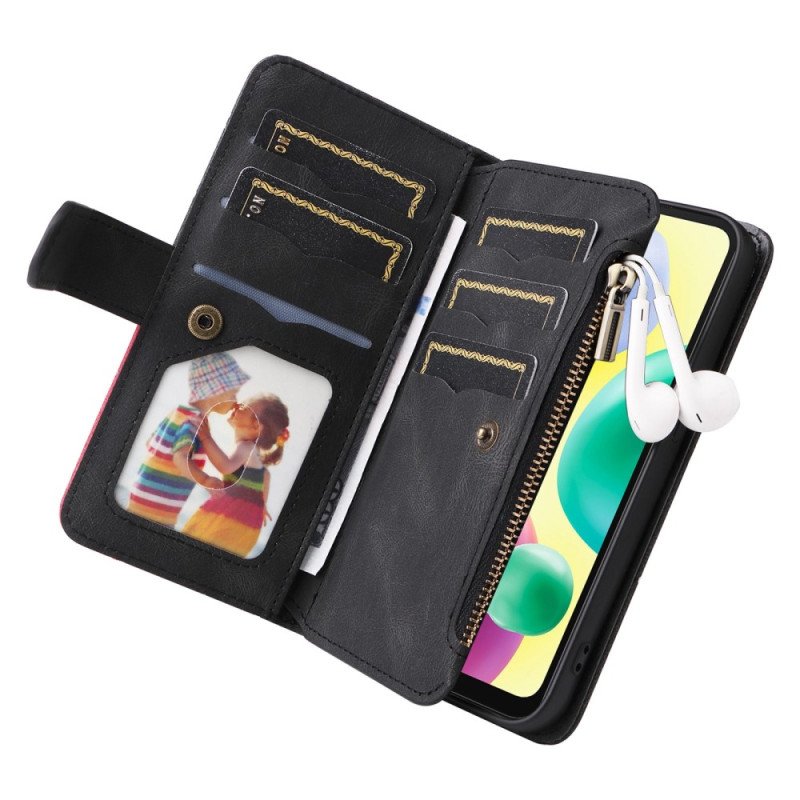 Det Här Fodralet Har Många Korthållare Och En Ficka Med Dragkedja.