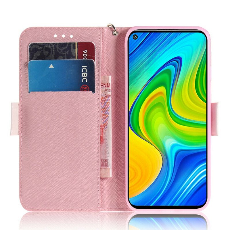 Läderfodral Xiaomi Redmi Note 9 Med Kedjar Rem Blomträd