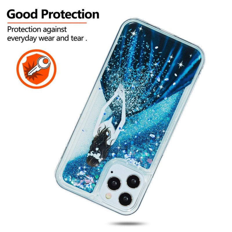 Din Iphone 15 Pro Är Ultramodern Med Detta Glitterfodral Dekorerat Med En Ung Flicka I Aftonklänning.
