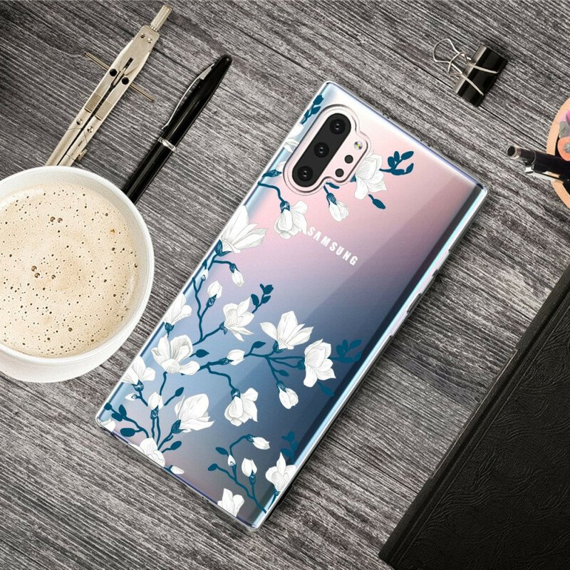 Din Samsung Galaxy Note 10 Plus Är Perfekt Skyddad Med Detta Silikonfodral Dekorerat Med Magnifika Vita Blommor.