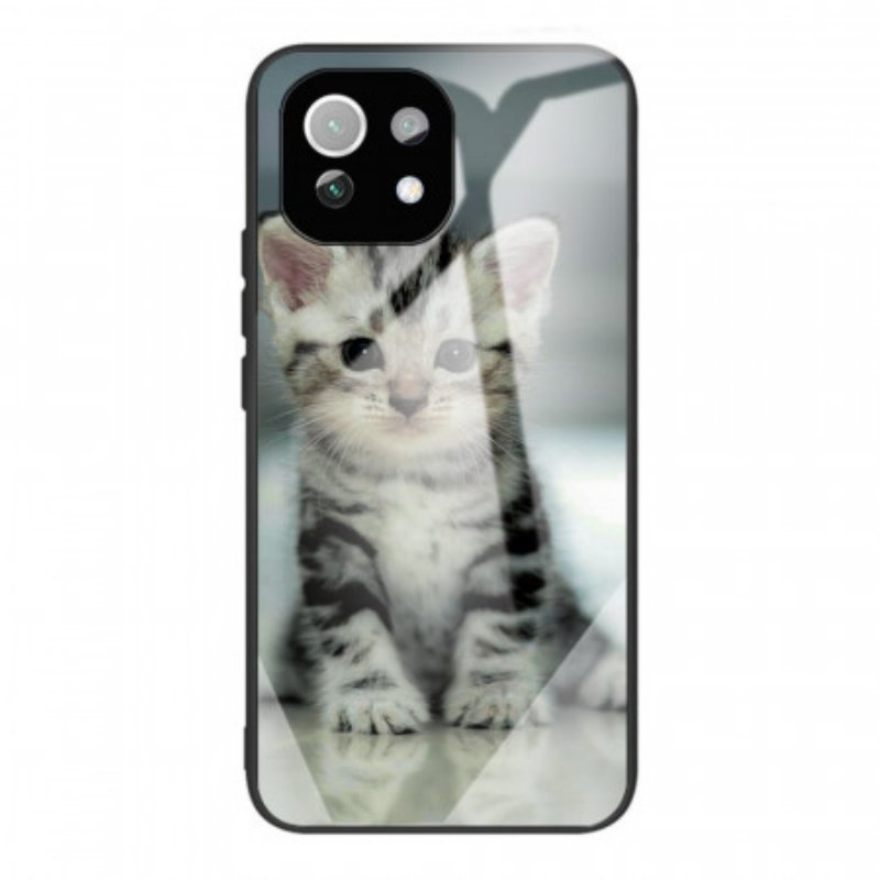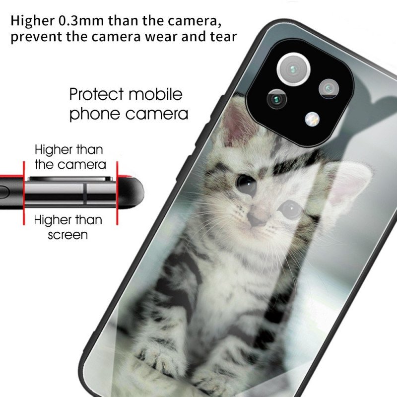 Din Xiaomi 11 Lite 5G Ne/Mi 11 Lite 4G/5G Är Helt Säker Med Detta Härdat Glas Och Silikonfodral Dekorerat Med En Fantastisk Kattunge.