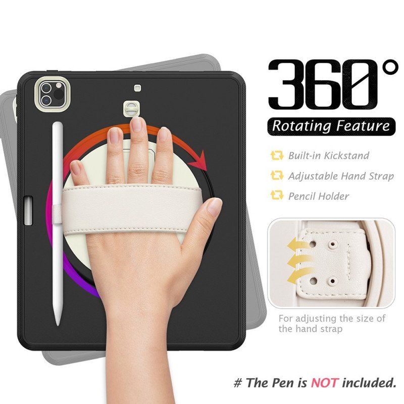 Din Ipad Pro 12.9" (2022) (2021) (2020) (2018) Är Perfekt Skyddad Med Detta Multifunktionella Fodral Med Handsfree-Stöd, En Rem Och En Axelrem.