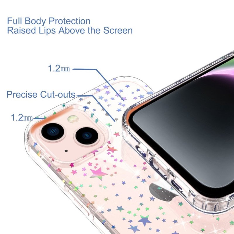 Säkra Din Iphone 14 Plus Med Detta Flexibla Silikonfodral Fyllt Med Stjärnor Eller Regnbågsfjärilar.