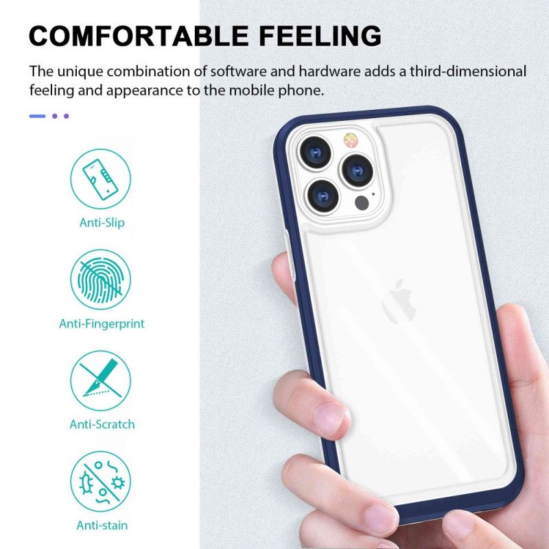 Crystalfodralet För Iphone 14 Pro Har En Genomskinlig Baksida Och Färgade Silikonkanter.