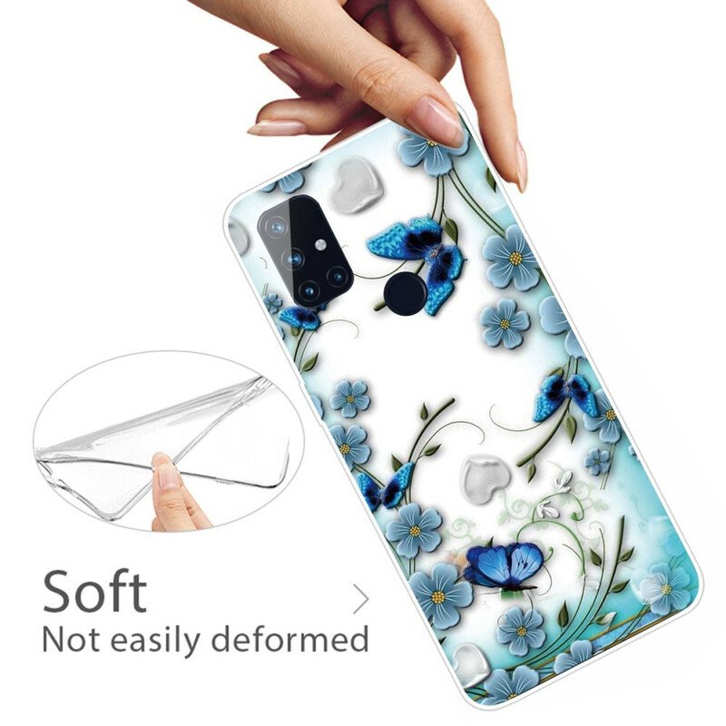 Din Oneplus Nord N100 Förblir Tunn Och Lätt När Den Säkras Med Detta Genomskinliga Silikonfodral I Retro Flowers And Butterflies.
