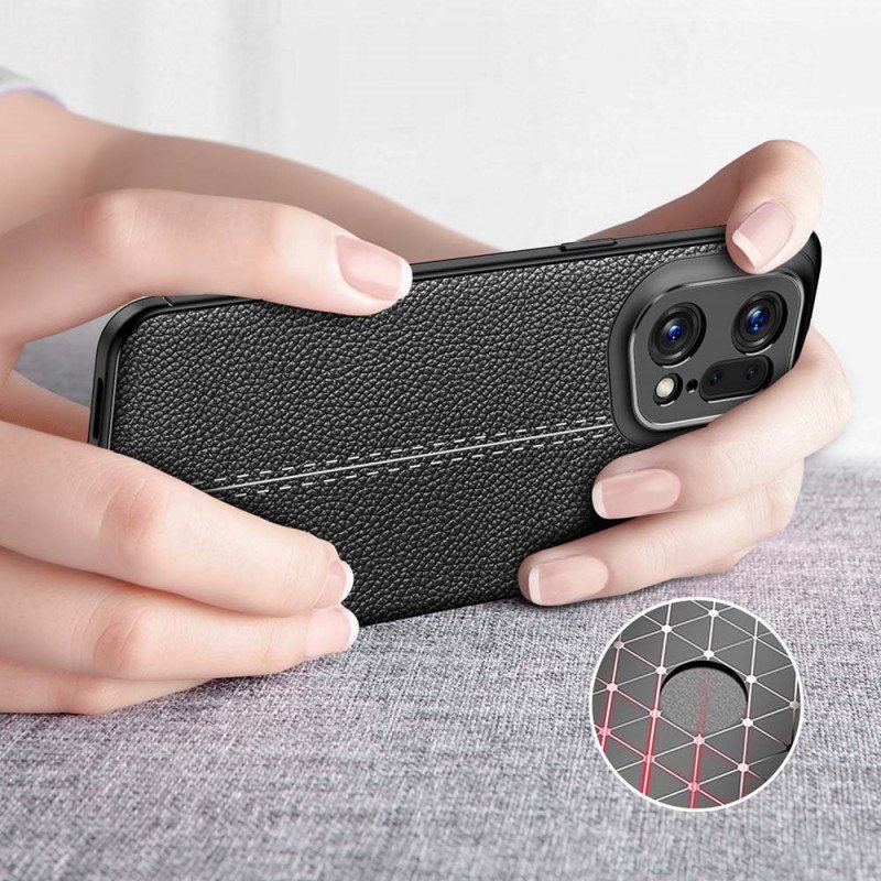 Double Line Leather Effect-Fodralet Kommer Försiktigt Att Fästa Baksidan, Linserna Och Kanterna På Din Oppo Find X5 Pro.