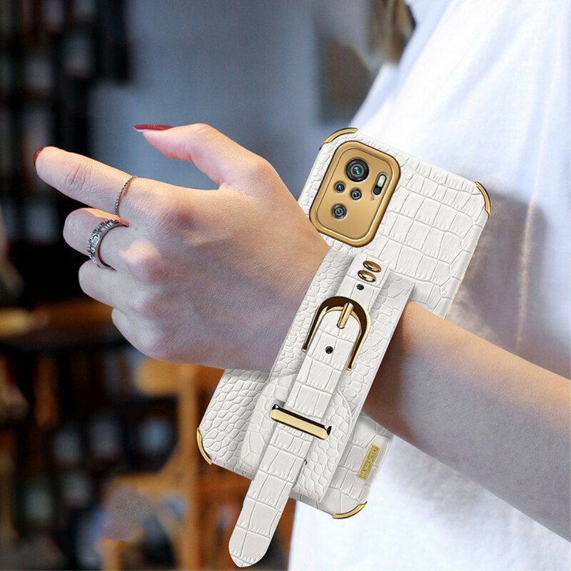 Det Multifunktionella Croco-Armbandsöverdraget Erbjuder Exceptionellt Skydd För Xiaomi Redmi Note 10/Note 10S/Poco M5S.