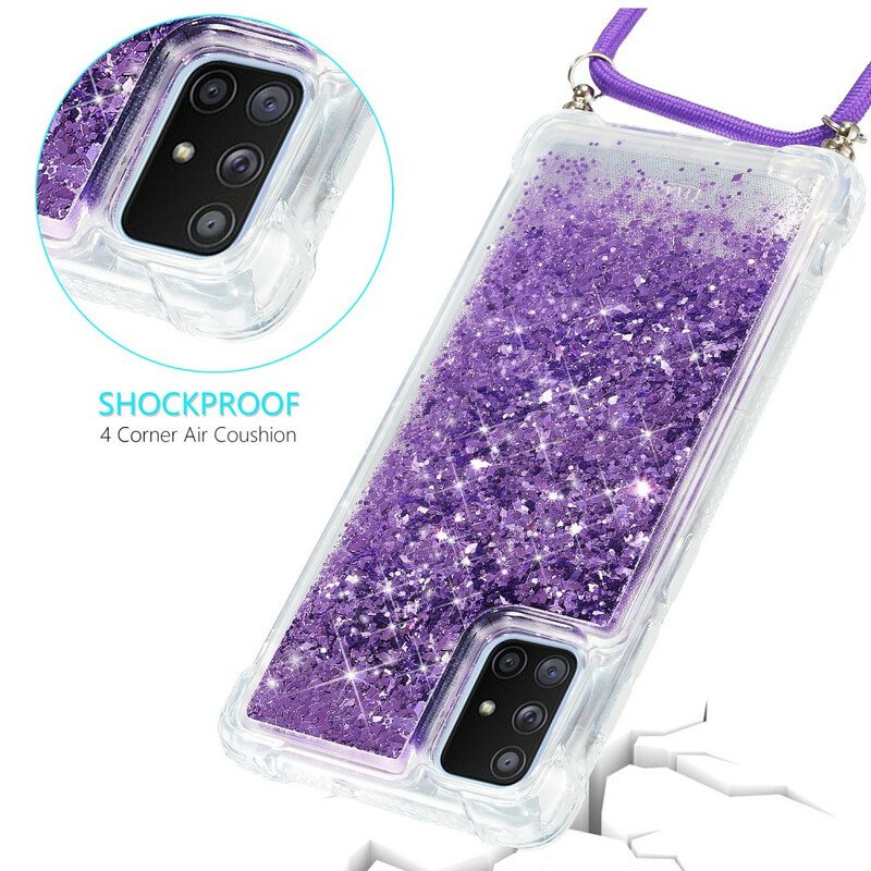 Detta Silikonfodral Dekorerat Med Glitter Kommer Med En Bärrem För Att Bära Din Samsung Galaxy A51 5G Som Du Vill.