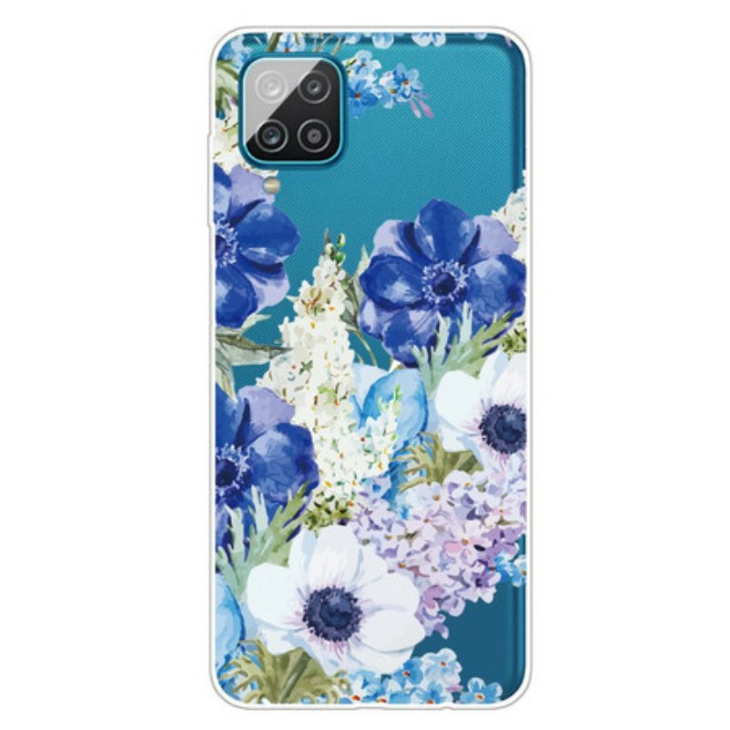 Det Genomskinliga Watercolor Blue Flowers-Fodralet Säkrar Din Samsung Galaxy A12 / M12 Optimalt Och Elegant Varje Dag.