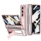 Fäst Samsung Galaxy Z Fold 5 Med Detta Fodral I Metalleffekt, Utrustat Med Ett Stöd, Som Också Skyddar Linserna Och Skärmen.