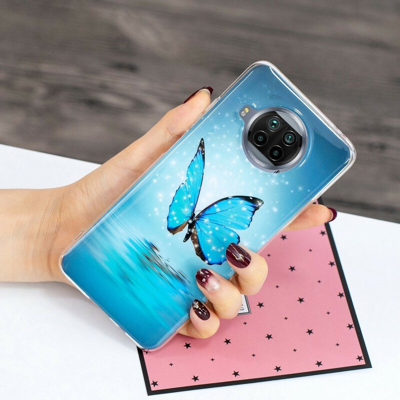 Dekorera Och Skydda Din Xiaomi Mi 10T Lite 5G / Redmi Note 9 Pro 5G På Ett Originellt Sätt Tack Vare Det Fluorescent Blue Butterfly-Fodralet!