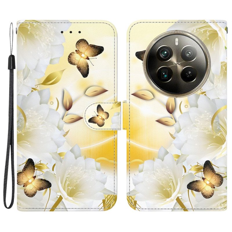 Skyddsfodral Realme 12 Pro / 12 Pro Plus Gyllene Fjärilar Och Blommor Med Rem