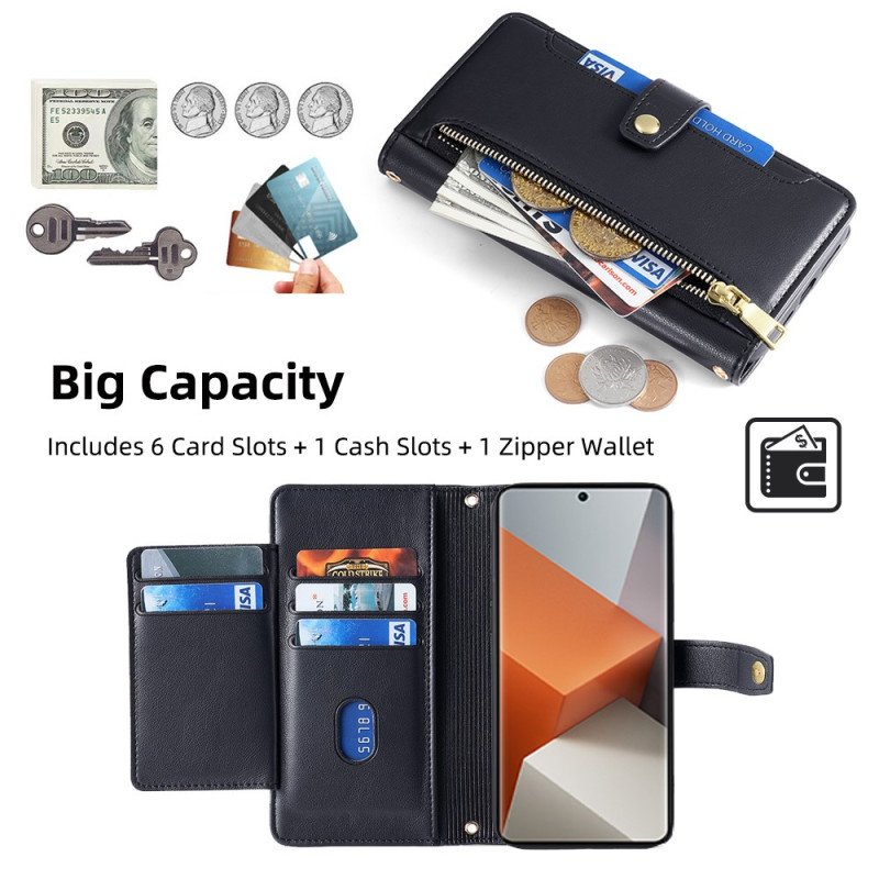 - Stor Kapacitet: Inkluderar 6 Kortplatser, 1 Pengafack Och 1 Dragkedja